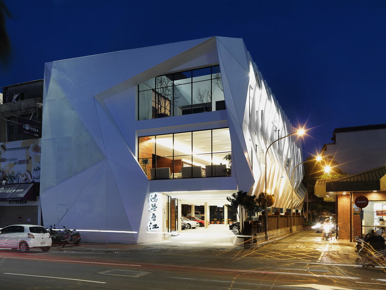 该设计包括两层的架空玻璃盒子,以及一系列双层穿孔金属板。以在中国传统中象征吉祥的龙为灵感,其外形象征了成功与好运。最大程度展现当地文脉,整体体量利用了场地的长度,从而让建筑在所有维度尽可能伸展。