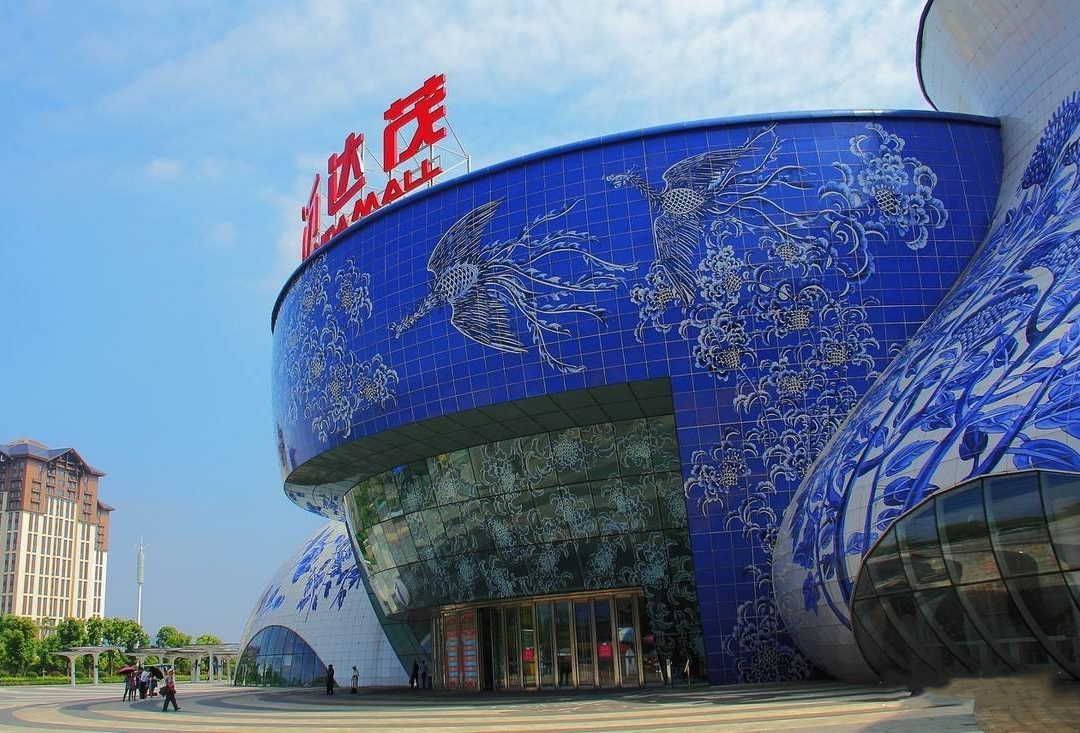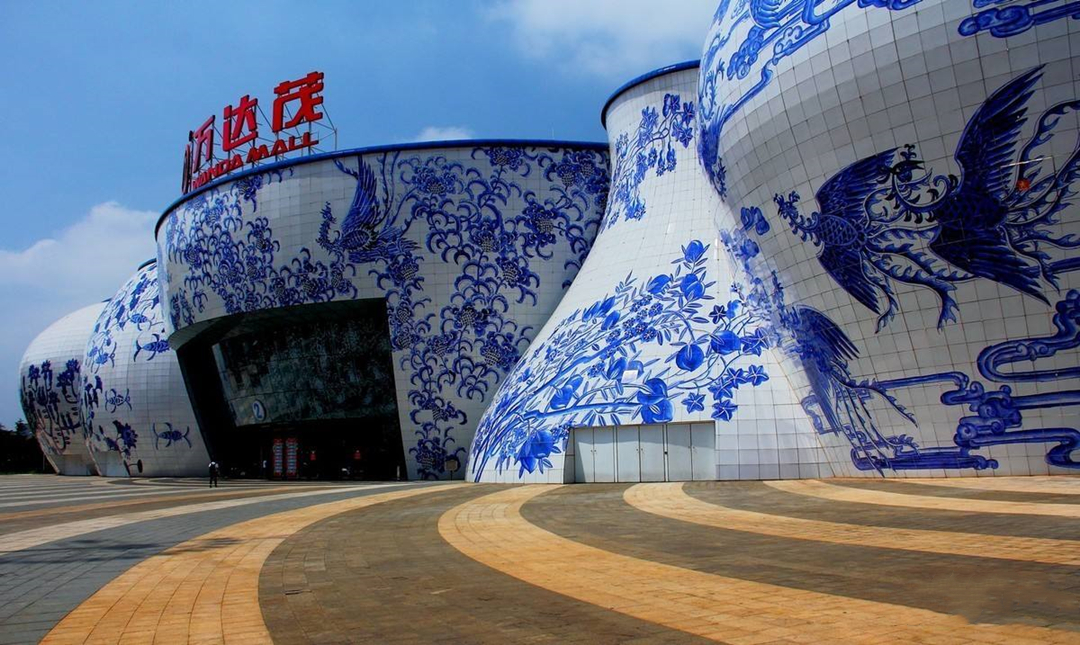 万达茂整个幕墙工程的外立面,运用彩釉陶瓷板幕墙、青花铝板幕墙等幕墙系统构成。26个瓷罐,造型个体上形态多姿、整体上一气呵成。为强调主入口,创造性地采用了蓝底白花的效果。21组青花瓷装饰纹样,取材于中国传统文化题材,以人们喜闻乐见,吉祥如意的寓意进行设计。“年年有余”、“凤戏牡丹”、“喜上眉梢”、“欣欣向荣”、“福寿绵长”……,每一个瓷罐都赋予了不同的吉祥主题,细腻刻画出人们对美好生活祈盼的意境。这样的美将永远被定格在这个千年不退色的青花瓷上。 项目图库